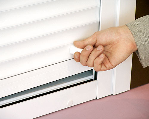 - Роллеты с таким механизмом можно устанавливать на окна, двери, проемы где есть возможность достать рукой до верхней точки при открытом полотне.